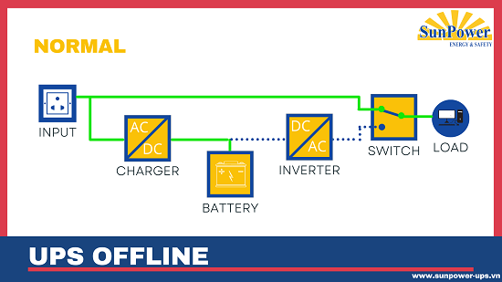 ♦ Nguyên tắc hoạt động của UPS Offline.
